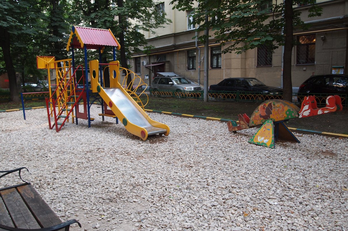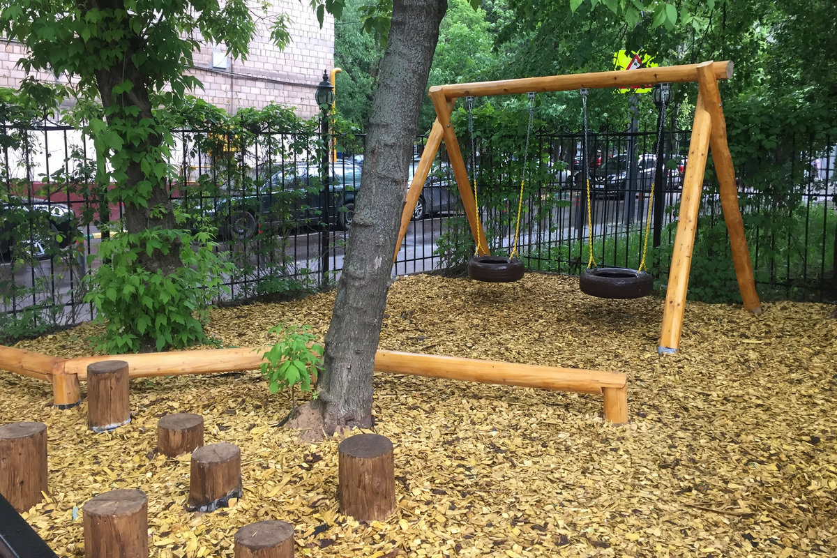1. Покрытие из резины обладает достаточно низкой игровой ценностью, особенно ровные площадки без рельефа, покрытые однотонным слоем резины. Ровная “стерильная” поверхность не создает условий для преобразования поверхности, ее исследования, экспериментирования и игры. Поверхность резины ежедневно очищается от листьев, веток, камней, снега, что значительно снижает игровые возможности площадки. По ровному покрытию можно бегать, прыгать, катать машинки, играть в мяч, однако результаты исследований показывают (см., например, Czalczynska-Podolska M. The impact of playground spatial features on children’s play and activity forms: An evaluation of contemporary playgrounds’ play and social value // Journal of Enviromental Psychology. 2014. Vol. 38. P. 132–142. doi: 10.1016/j.jenvp.2014.01.006), что эти движения достаточно стереотипны, дети быстро перевозбуждаются и теряют контроль над своим поведением, становятся шумными и плохоуправляемыми. На покрытии с разными линиями и цветами можно задать игровые сценарии, однако наблюдения показывают, что дети не часто их используют.