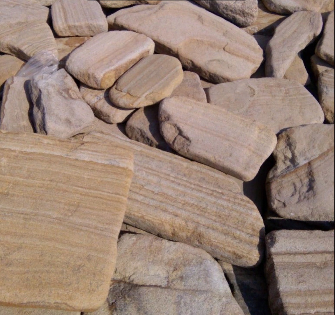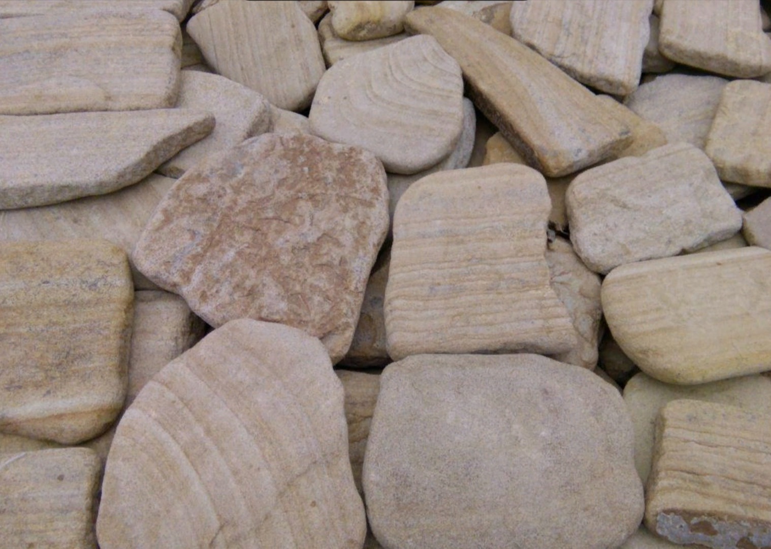 • Kamenclub.ru: Песчаник пластушка галтованная светло-серая (3,0 см)  купить в Саратове песчаник светло-серый, серый ландшафтный камень рваный колотый 21000 руб/м3   фото КАМЕНЬ КЛУБ