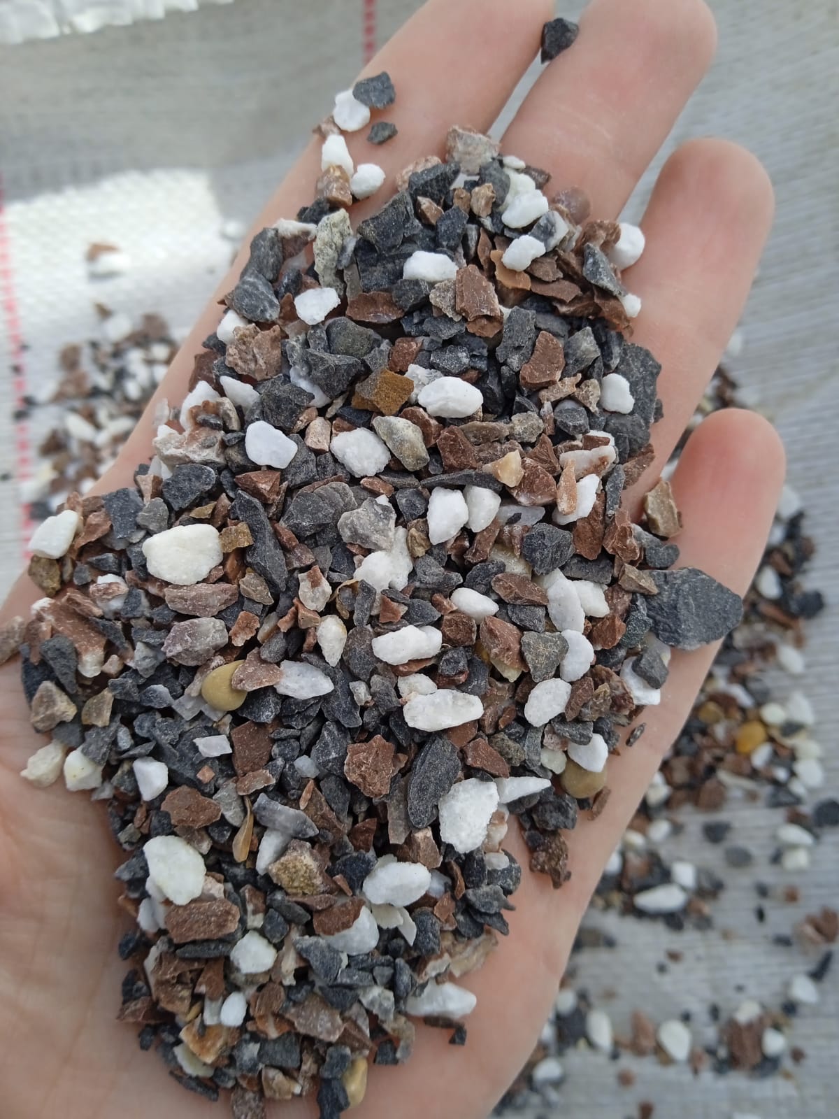 • Мраморная крошка (щебень галтованный микс:: белый-черный) фр.5-10 мм