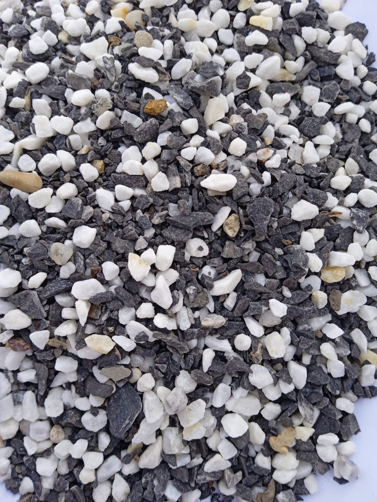 • Мраморная крошка (щебень галтованный микс:белый-черный-розовый-медовый) фр.5-10 мм.
