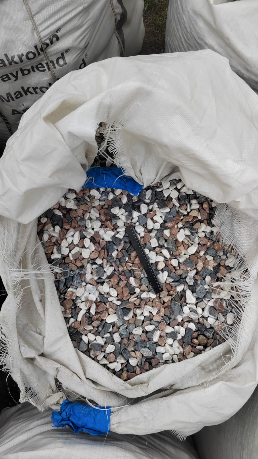 Мраморная крошка (щебень галтованный микс:белый-зеленый-розовый) фр.20-40 мм.