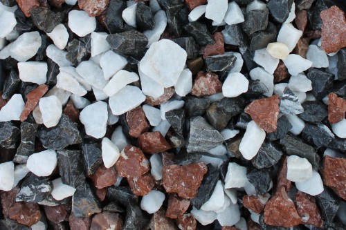 Kamenclub.ru: мраморная крошка (щебень крошка микс : белый-черный-розовый) фр. 3-5 мм. купить в Саратове - заказать природный камень по низким ценам оптом с доставкой от производителя - kamenclub.ru