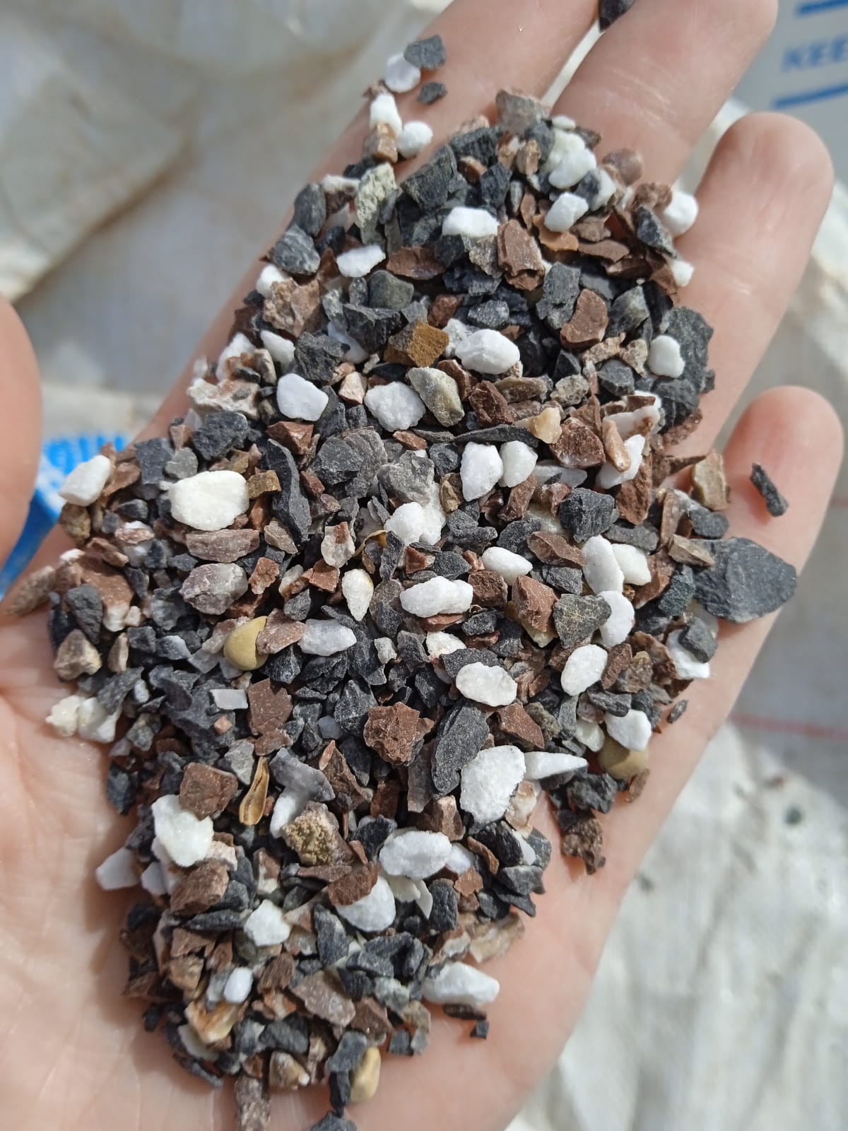 Мраморная крошка (щебень крошка микс : белый-черный-розовый) фр. 3-5 мм.