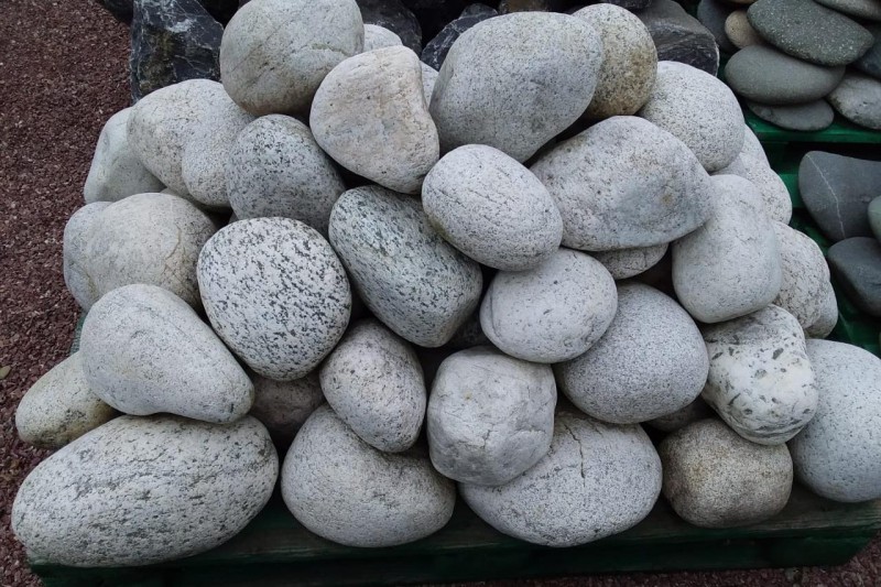 • Kamenclub.ru: Бело-серый валунчик фр.100-300 мм.  купить в Саратове крупный камень для ландшафта серый, белый бело-серый валун крупная галька 4500 руб/т   фото КАМЕНЬ КЛУБ