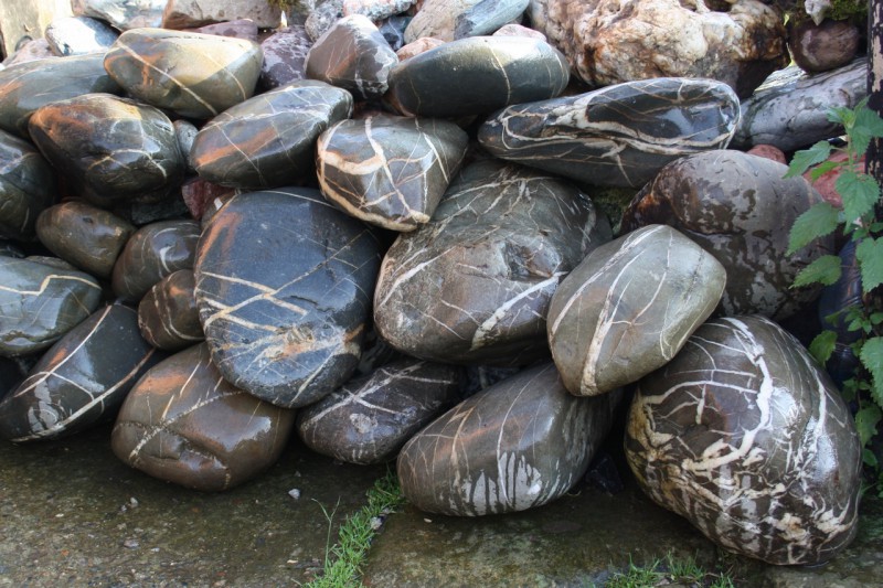 • Kamenclub.ru: Валунчик Паутинник фр.100-300 мм  купить в Саратове крупный природный камень галечник темно-серый с прожилками белый черный речной валунчик 5000 руб/т   фото КАМЕНЬ КЛУБ