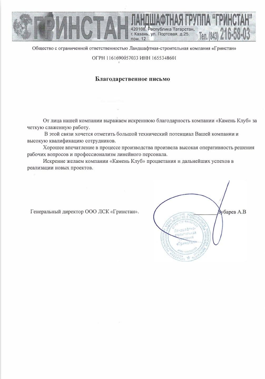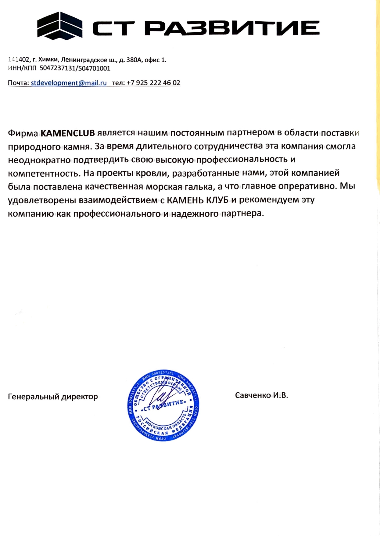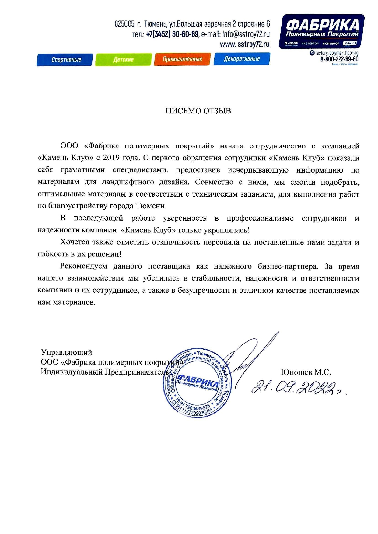 Рекомендательные письма клиентов Камень Клуб в Саратове