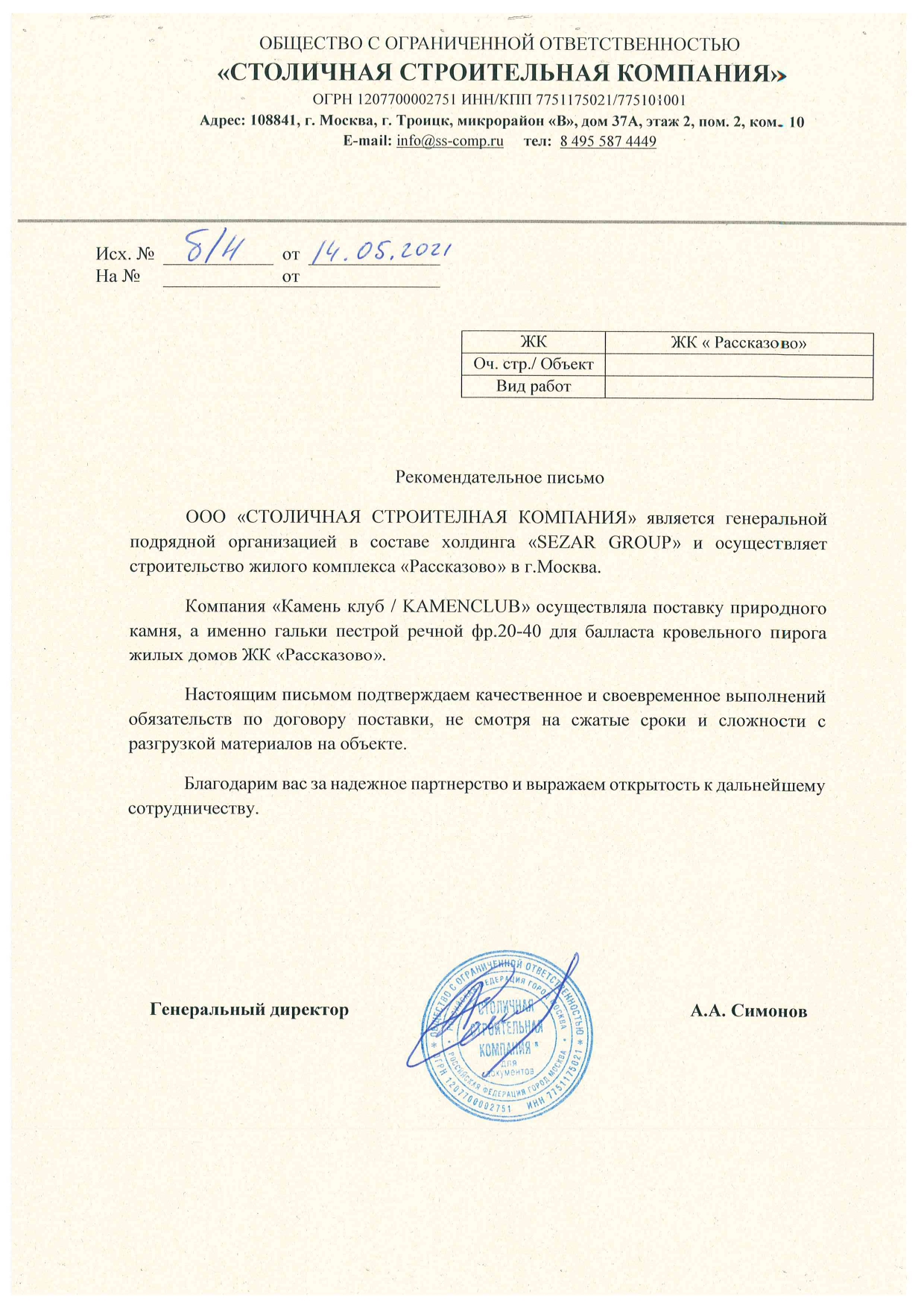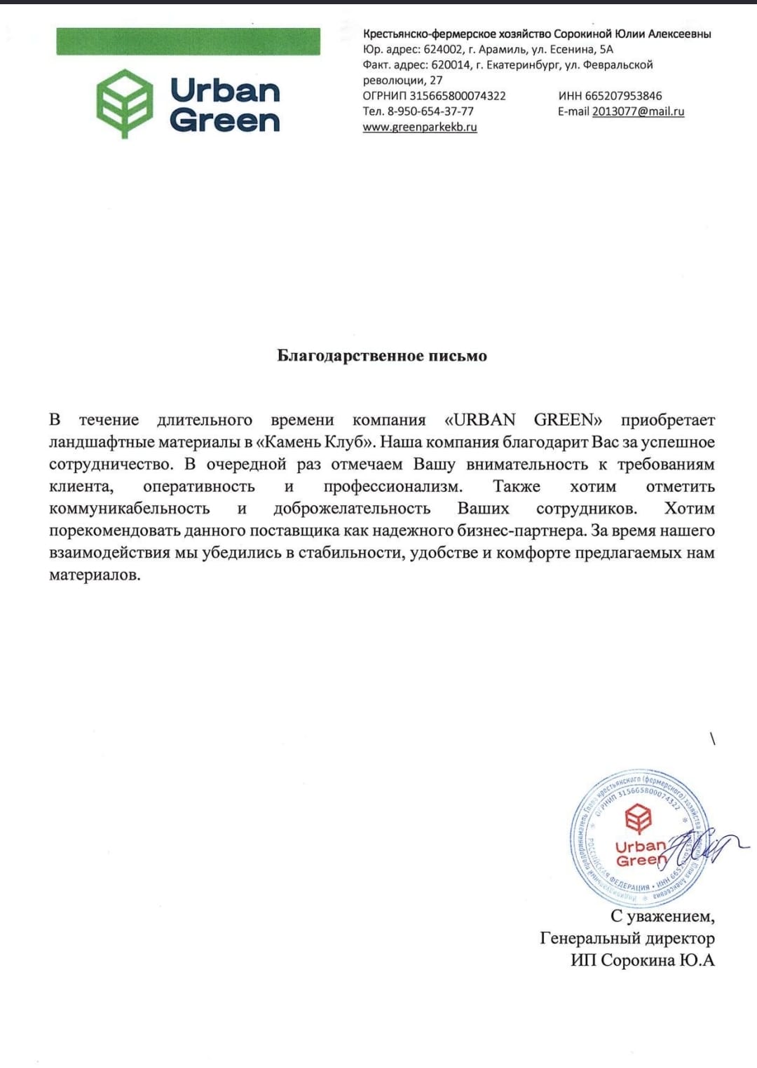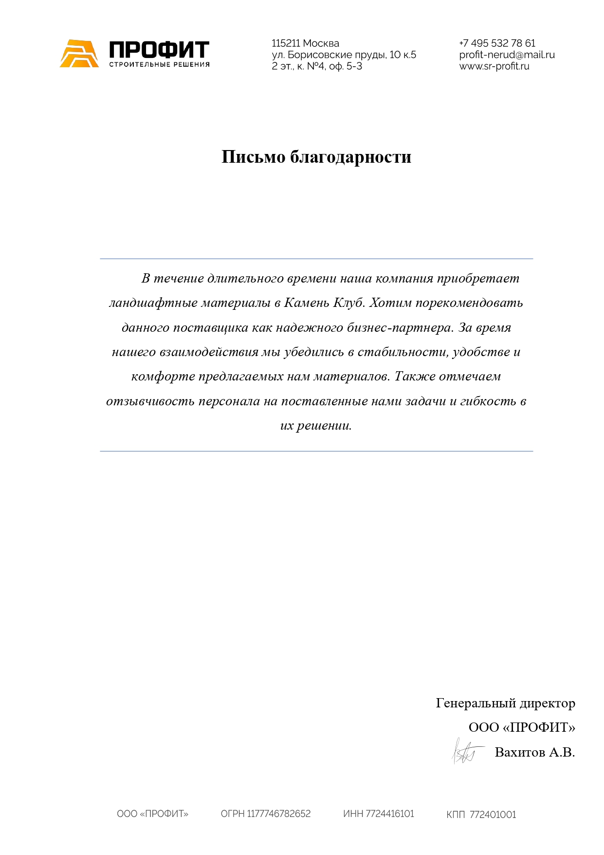 Рекомендательные письма клиентов Камень Клуб в Саратове